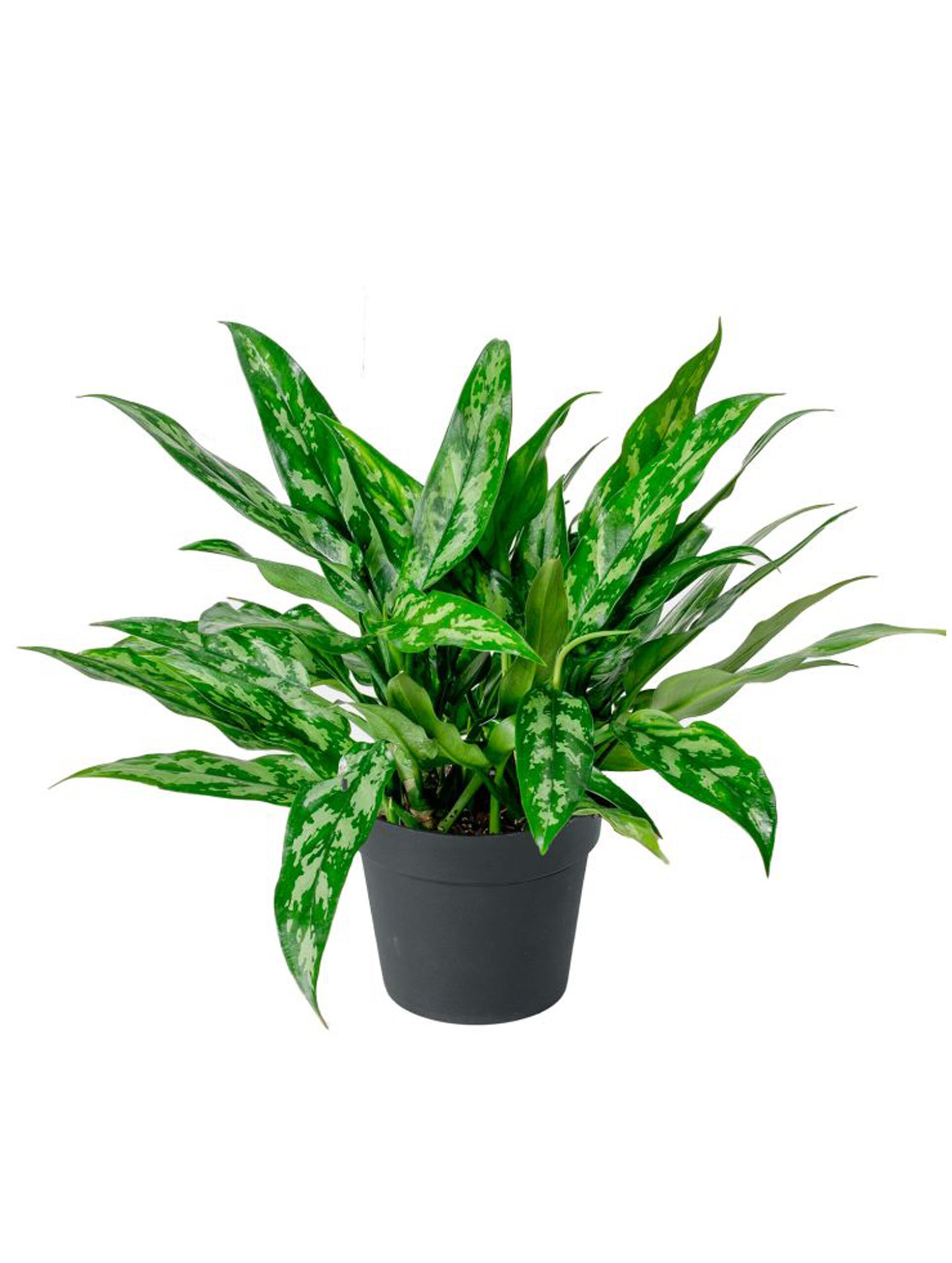 Maria’ features broad, glossy leaves that are deep green with striking silvery variegation. The contrast between the green and silver gives the plant a sophisticated and elegant appearance . This variety typically grows upright and can reach heights of about 2 to 3 feet (60 to 90 cm). Its bushy growth makes it an excellent choice for adding greenery to indoor spaces.