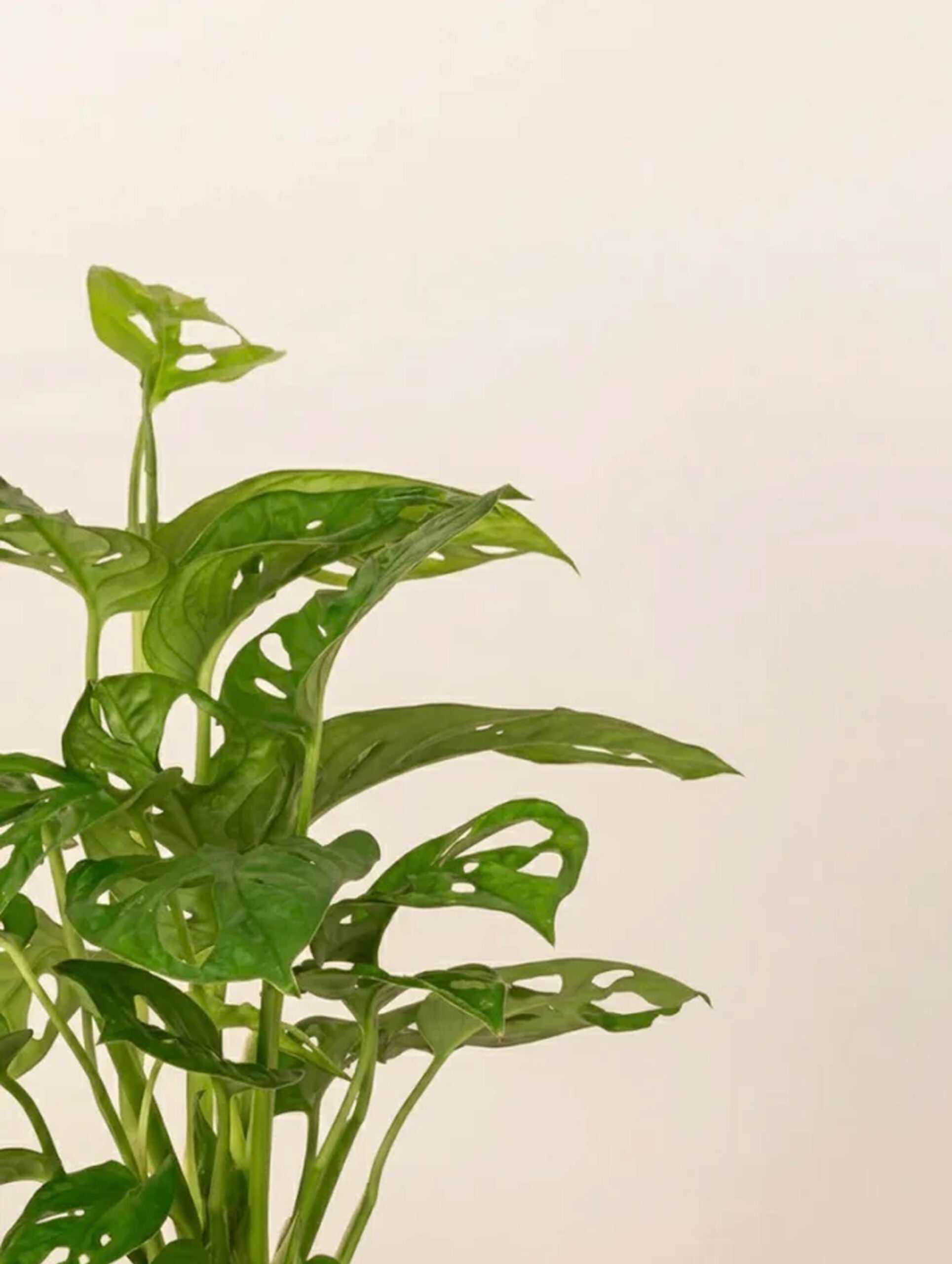 Monstera Adansonii, also known as Swiss Cheese Vine, is a tropical climbing plant native to Central and South America. It shares similarities with the Swiss Cheese Plant (Monstera deliciosa), featuring its characteristic leaves with distinctive splits and holes. The leaves of Monstera adansonii are typically smaller and more delicate, creating an intricate and captivating appearance. With its charming foliage, the Swiss Cheese Vine is an excellent choice for plant enthusiasts seeking a unique and eye-catching addition to their indoor greenery.