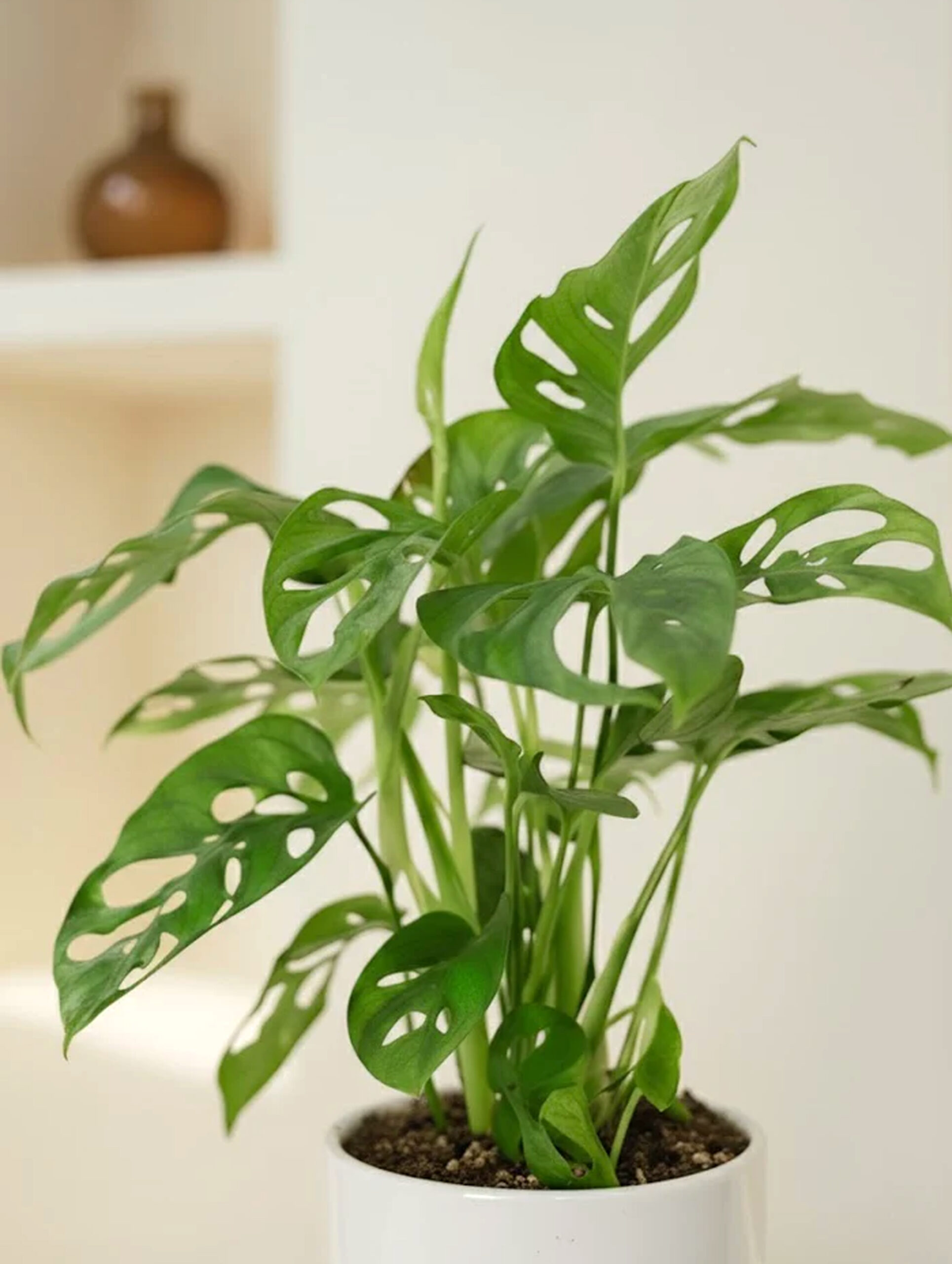 A tropical evergreen with large, heart-shaped leaves with holes, giving it a unique, “Swiss cheese” appearance.