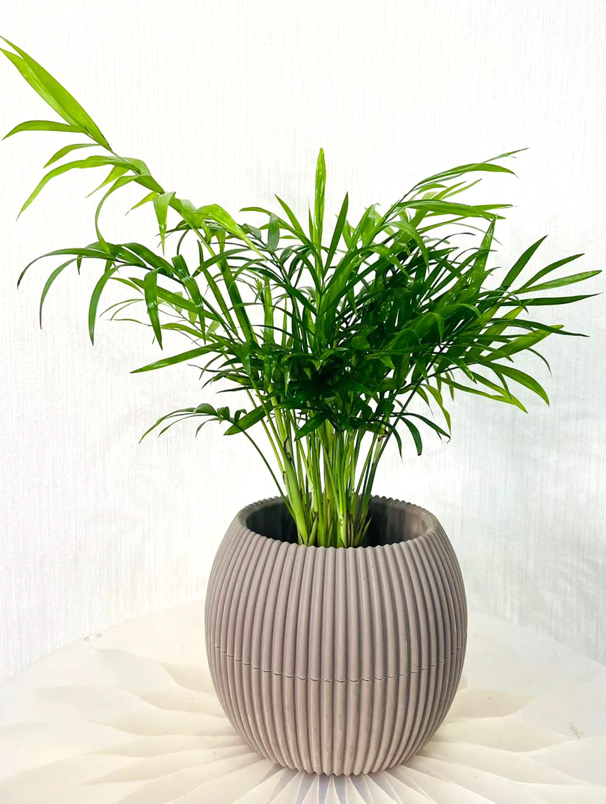 The Parlor Palm, also known as Chamaedorea, is a popular indoor plant that is native to the rainforests of Central and South America. It is a slow-growing plant that can reach a height of up to 100cm, but typically grows to around 30cm in height. The Parlor Palm has slender, green stems that are topped with delicate, feathery fronds that give it a graceful appearance.